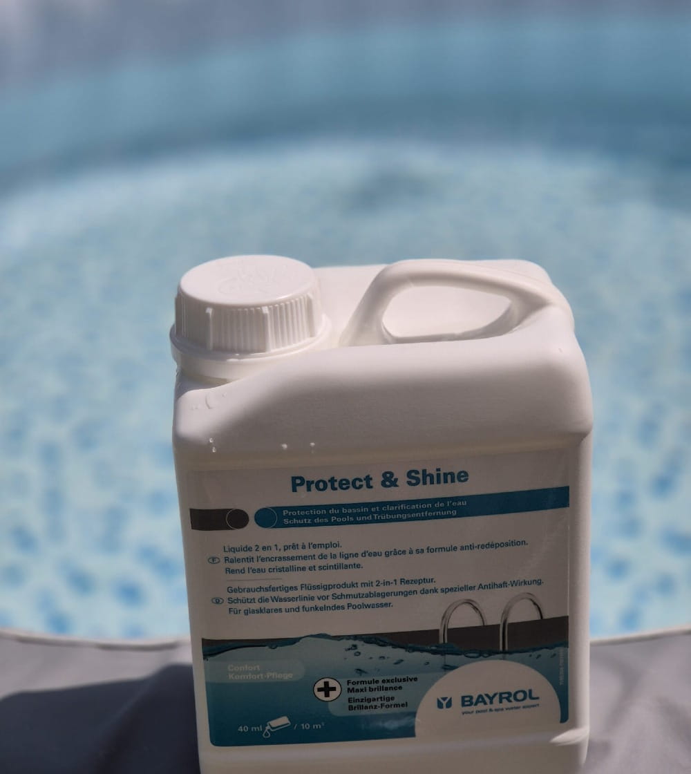 Protect & Shine od renomowanej marki BAYROL to innowacyjny, gotowy do użycia preparat w formule 2 w 1, który chroni linię wody przed osadzaniem się brudu i zapewnia krystalicznie czystą, lśniącą wodę w basenie. Idealny dla każdego, kto ceni sobie higienę i estetykę bez zbędnego szorowania.