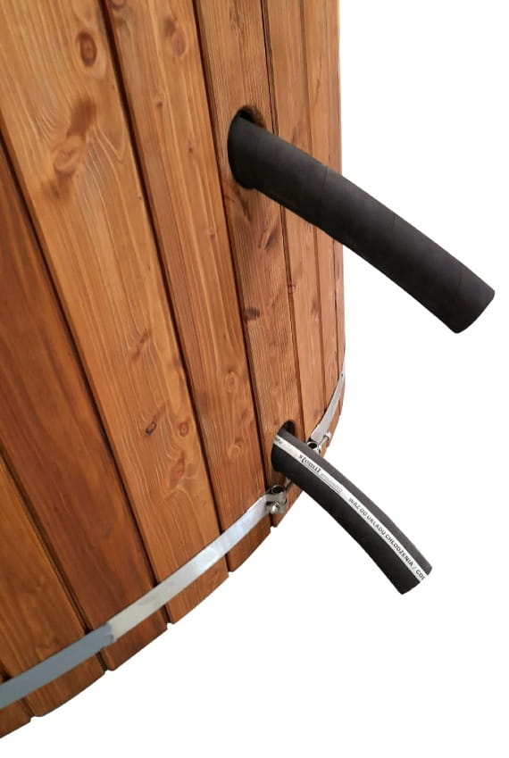 - Balia w obudowie z modrzewia (niecka akrylowa- laminowana kolor szary ) z obejmami ze stali nierdzewnej;