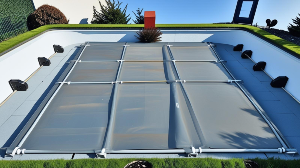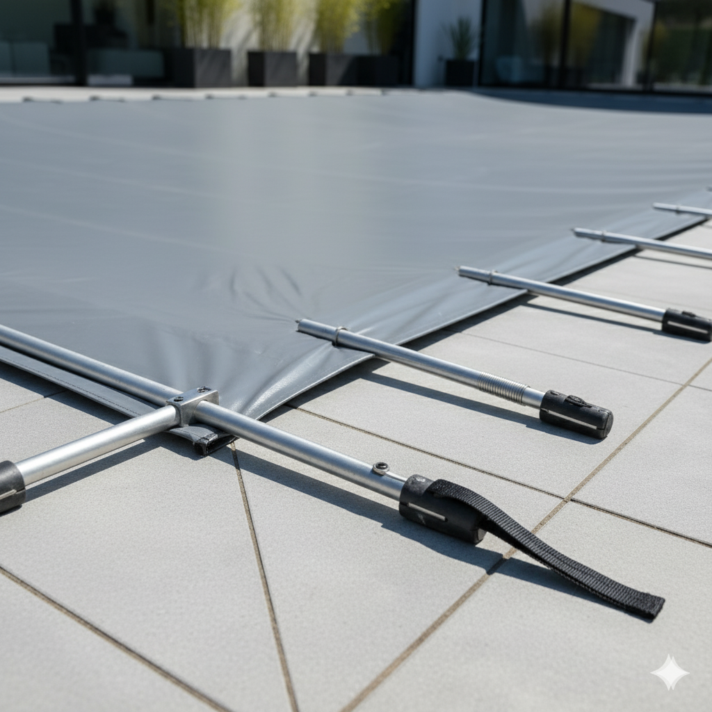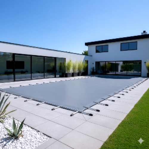 Plandeka z aluminiowymi wzmocnieniami to trwałe rozwiązanie całoroczne – zapewnia bezpieczeństwo, czystość i estetykę.
